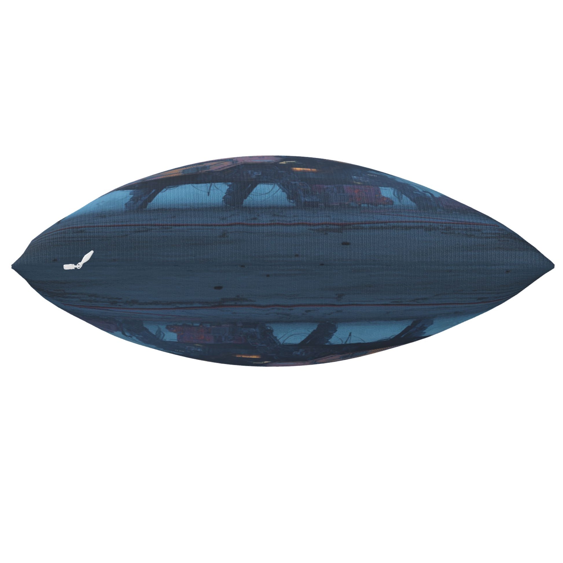 18"x18" Cyberpunk Fog Base Pillow Cover – Futuristic Industrial Building Illustration Cushion for Sci-Fi Interiors