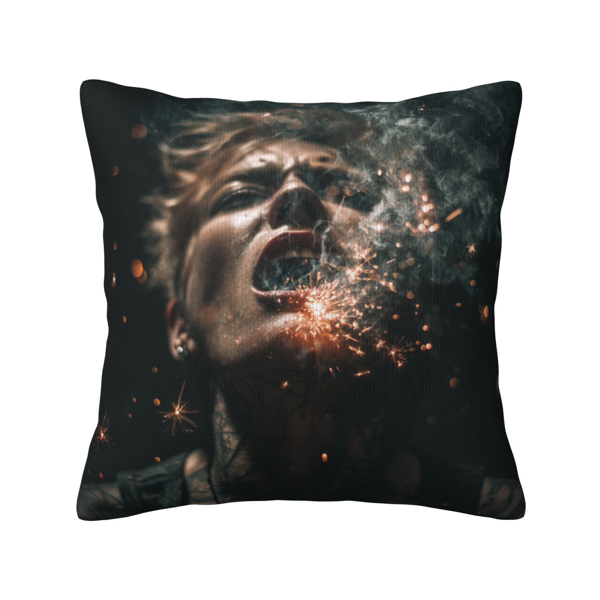 Add a burst of energy and expressive art to your space with this 18"x18" (45x45cm) decorative pillow cover featuring a striking image of a woman exhaling fiery sparks. Capturing the raw power of emotion and intensity, this design symbolizes rebellion, inner fire, and artistic freedom. It’s perfect for fans of modern abstract expressionism, grunge aesthetics, or bold photography art.